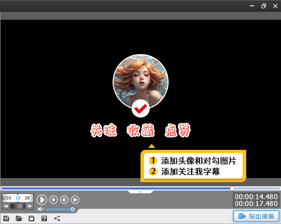 在片尾部分,添加你的个人头像和对勾图片,表示视频已结束并得到了认可。