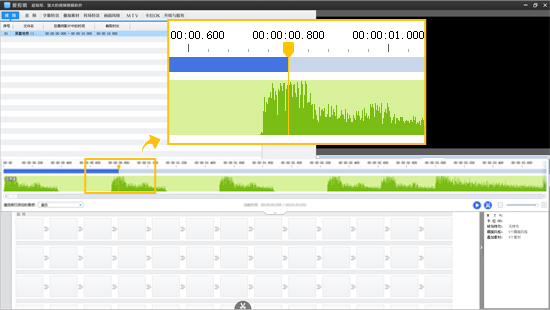现在,是时候将你的照片添加到视频中了。点击进度条上的向下凸起的小箭头,或者按Ctrl+E,打开创新式时间轴。你可以看到音频的波形图,通过移动滑块到波峰的位置(即音乐的鼓点),此处时间点,就是添加照片的最佳时机。