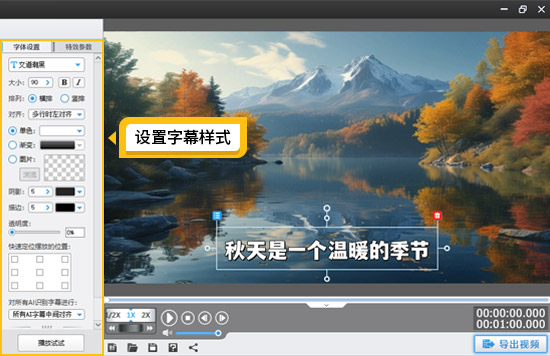 样式批量化:AI智能加字幕不仅能快速生成,还能批量调整样式。在爱剪辑里,选中一条AI字幕,在“字体设置”板块中,字体、颜色、大小等参数都能随心所欲地自定义。设置好后,只要点击预览框,再选择同步,所有字幕样式就会自动应用到整个视频,再也不用一个一个手动设置,节省超多时间!