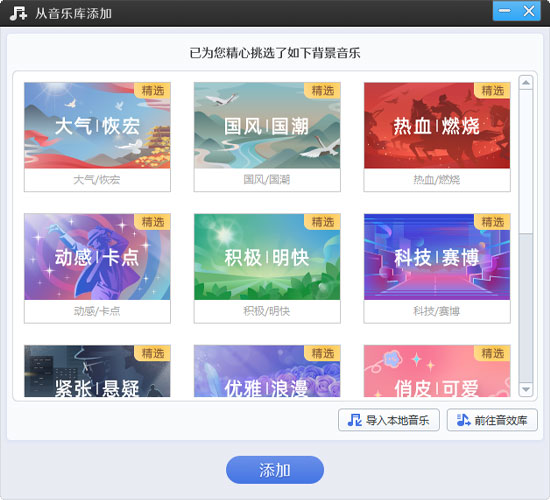 为视频增添动感BGM,能让氛围瞬间拉满。点击软件界面中的“音频”面板,这里仿佛是一个音乐的海洋。你既可以导入事先准备好的燃向BGM,让自己精心挑选的旋律为视频增色;也可以畅游在爱剪辑自带的音乐库中,在其中挖掘那些充满活力的燃向BGM,一键即可将其融入视频。