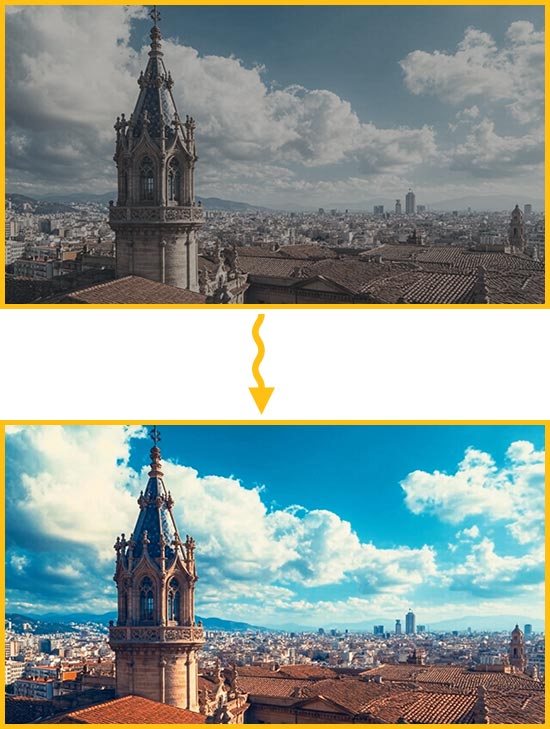 “冷蓝清透”:通过冷色调的调整,让画面呈现出清透干净的质感,适合拍摄蓝天、海洋等场景。