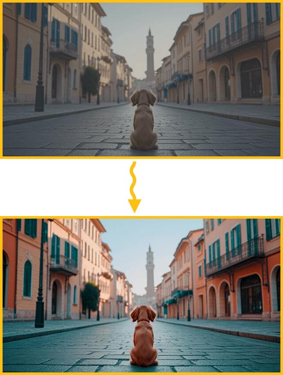 青橙色调是电影和摄影中备受追捧的风格,冷暖交织的色彩让画面充满艺术感。在爱剪辑里,只需在调色方案中选中“冷暖交织”即可实现。