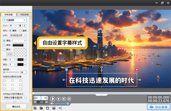 添加字幕是视频制作中不可或缺的环节,但手动输入既耗时又费力。爱剪辑的AI自动加字幕功能,能将语音快速准确地转换为文字,转换速度快、准确率高。而且,软件提供了丰富的字幕编辑工具,用户可以自由调整字幕的字体、颜色、大小、位置、动画效果等,让字幕与视频完美融合,提升视频的观看体验。